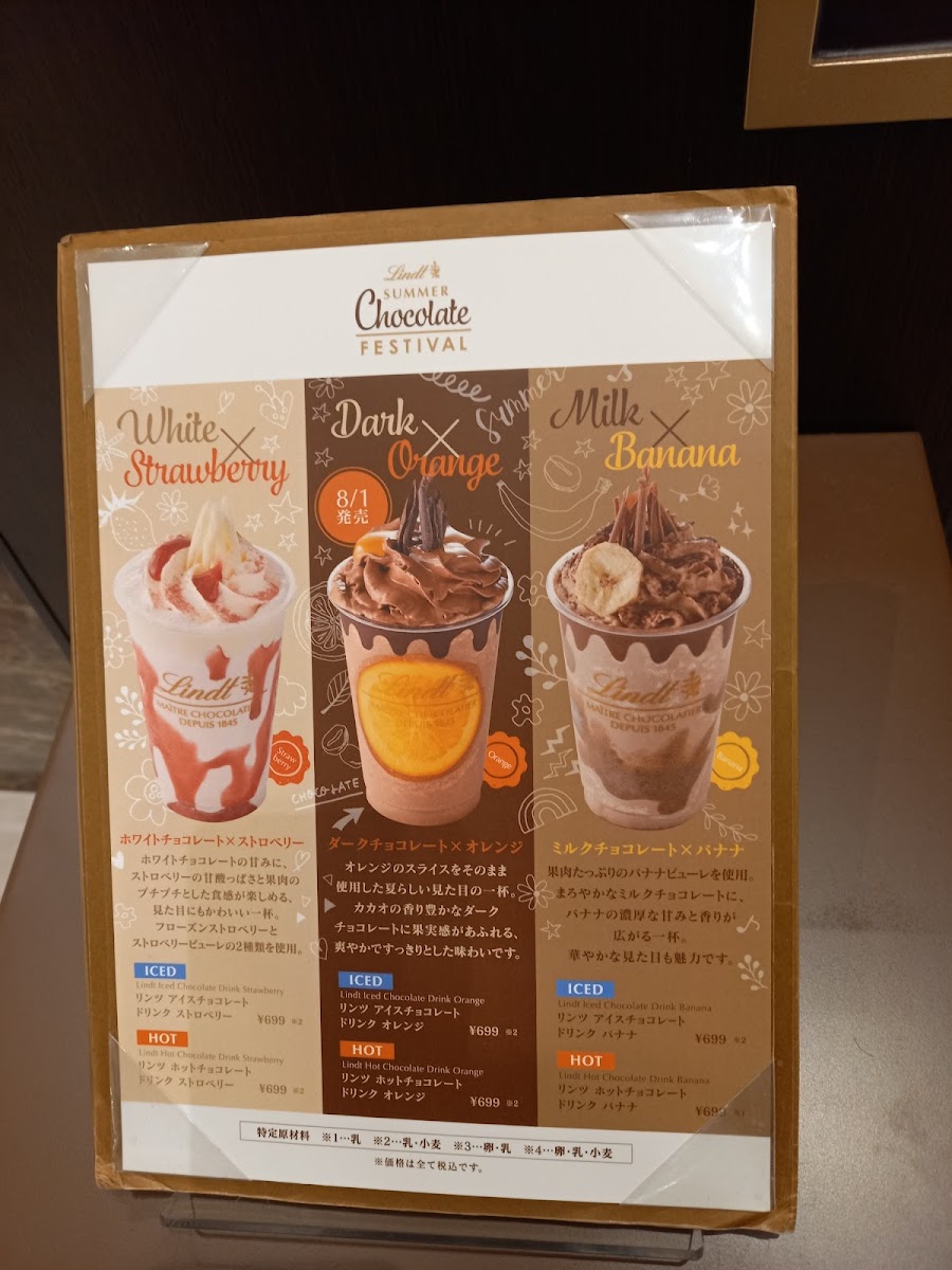 Lindt Chocolate Boutique & Cafe Kobe Marui Menu